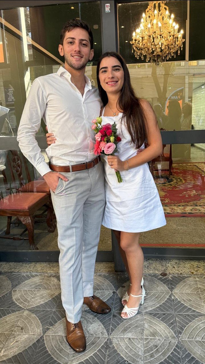 Oi amigos e família! Nosso grande dia está chegando, e caso alguém ainda não conheça nossa história, vamos contar um pouquinho dela aqui. Nos conhecemos em janeiro de 2021 graças à amigos em comum (agradecimento especial para Carol e Elias). Não sei se amor à primeira vista existe, mas sei que quando nos conhecemos tudo mudou. Uma semana depois do primeiro encontro eu (Vitória) me mudei de volta para BH e ele (Léo), continuou morando em Brasília. A distância foi muito difícil, mas nunca pensamos em desistir, porque o amor fazia todo o esforço e dificuldades valerem a pena. Depois de um tempo fazendo funcionar de longe, nos esforçando para sempre nos ver, finalmente conseguimos nos mudar para a nossa casinha, e agora estamos prontos para dar o próximo passo de uma vida toda juntos. Encontrar o grande amor da nossa vida é um grande privilégio, e depois de dividir tantos momentos lindos juntos, chegou a tão esperada hora de nos casar! Estamos muito felizes em poder ficar de pé diante de Deus, nossas famílias e amigos para mostrar nosso comprometimento um com o outro.